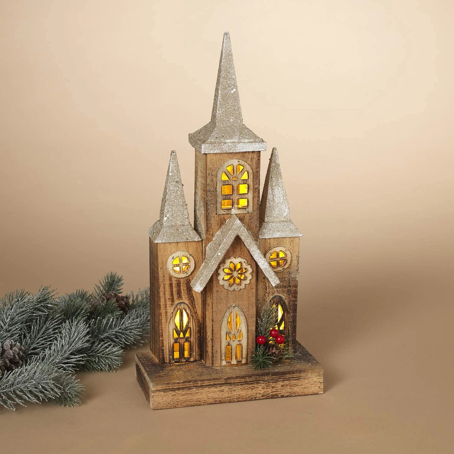 - Celebrate the winter months with our rustic LED lighted 16-inch wood Christmas village church with gold gables