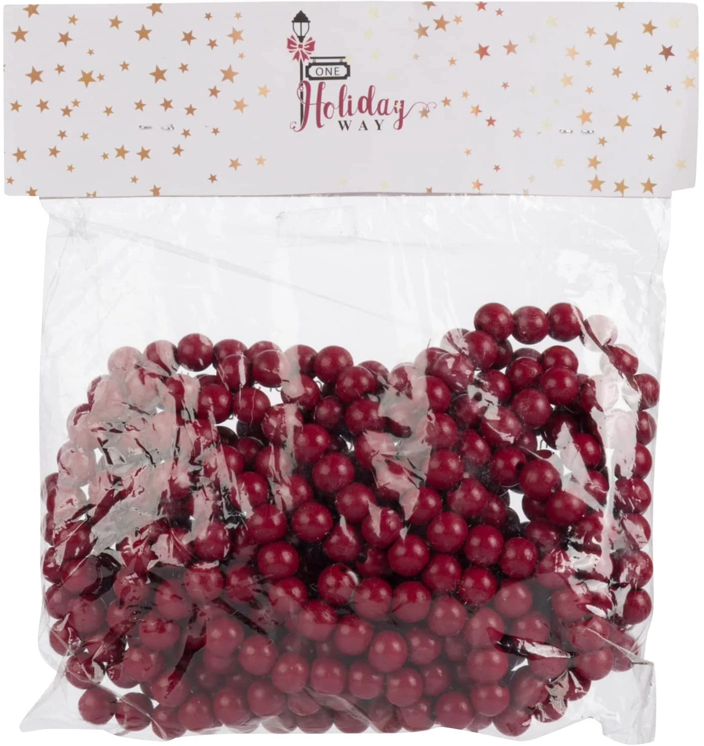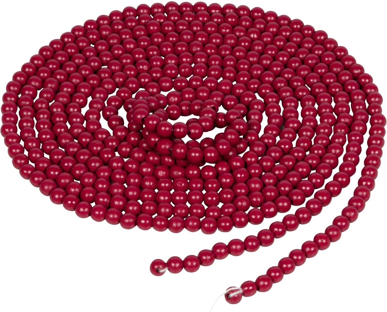 - 18-FOOT CRANBERRY RED WOOD BEAD GARLAND features 1/2-inch dark red wooden beads in a shiny finish. Measures an extra-long 216 inches long