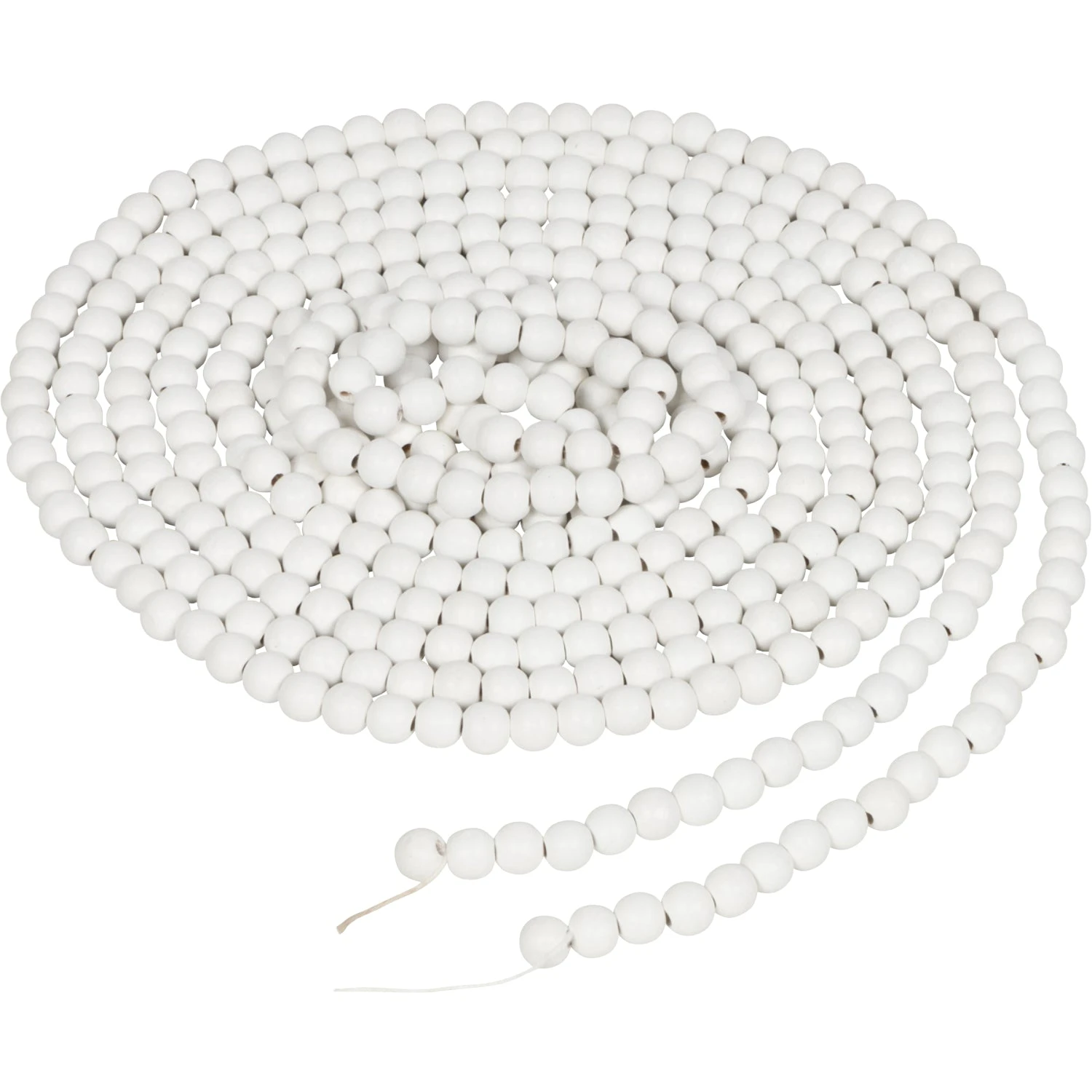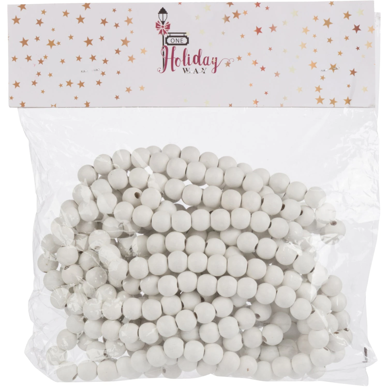 - 18-FOOT MATTE WHITE WOOD BEAD GARLAND features 1/2-inch matte white wooden beads. Measures an extra-long 216 inches long