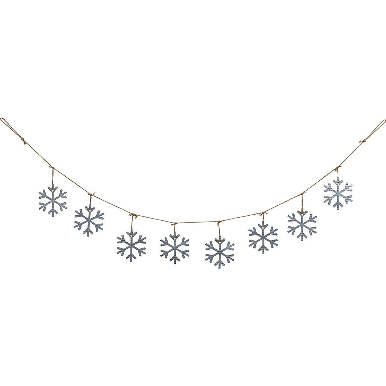 - This minimalist garland of galvanized metal snowflakes strung on rope is perfect for both the holidays and all winter long!