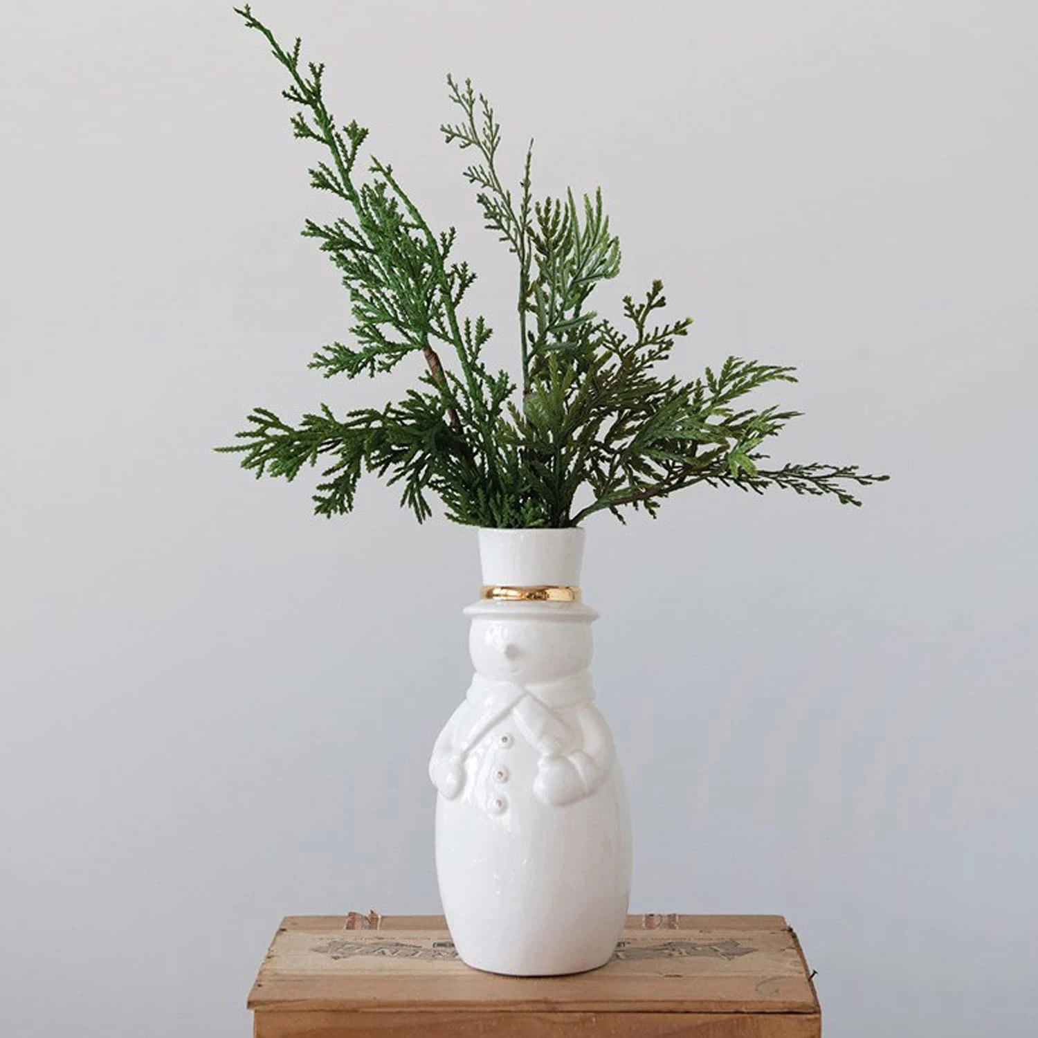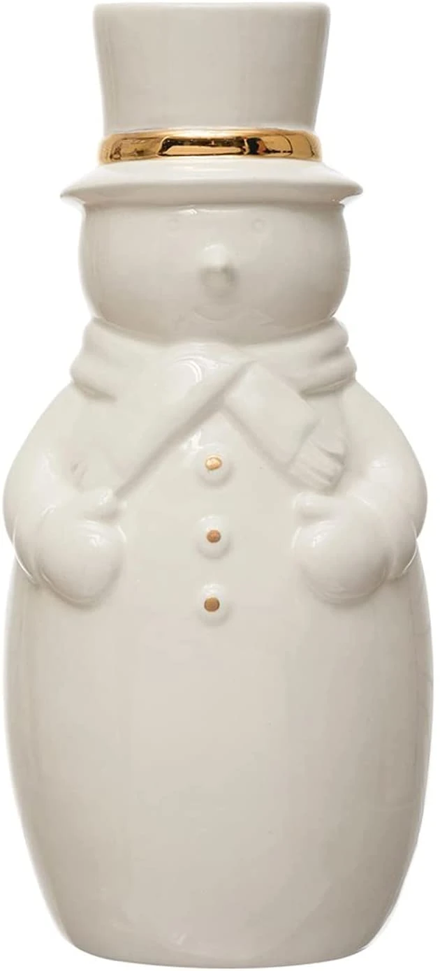 - 8-INCH DECORATIVE STONEWARE SNOWMAN VASE is a festive pick for your mantel, table, or desk. While charming on its own, this ceramic decoration looks best when filled with flowers, branches or greenery