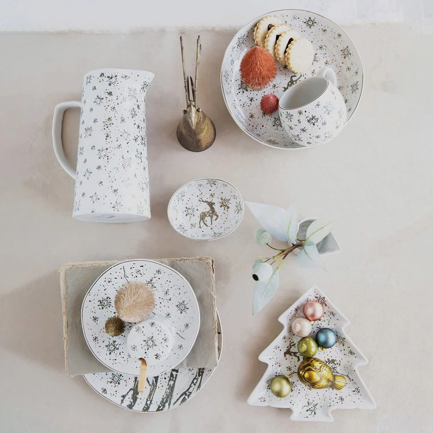 - 9.5-INCH STONEWARE CHRISTMAS TREE PLATE is the perfect size for serving fresh-baked cookies. Or try piling a handful of candy canes on this dish, so the family can enjoy them alongside warm mugs of cocoa