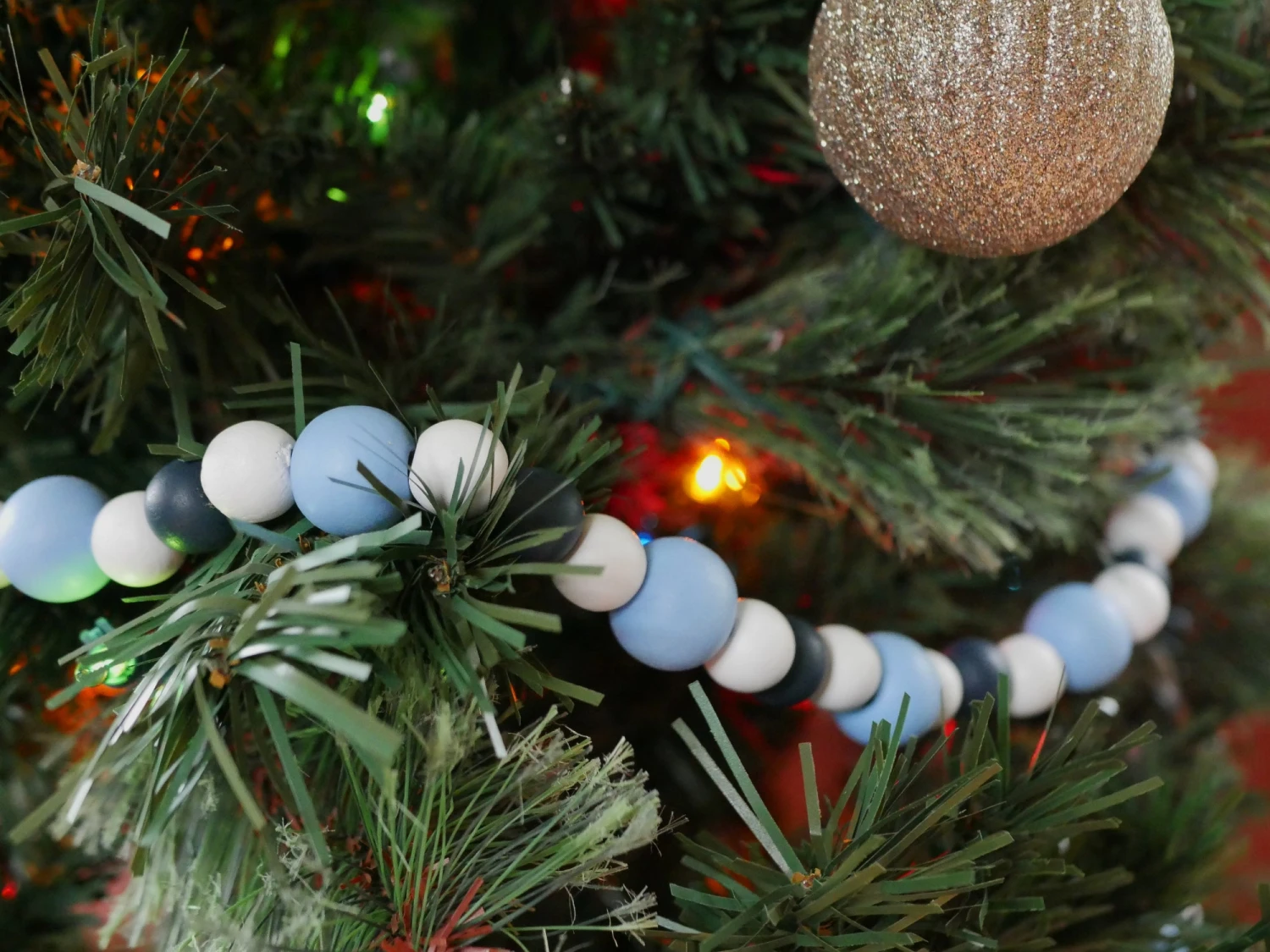 9-Foot Vintage Rustic Navy, Blue And White Wood Bead Garland Christmas Tree Decoration