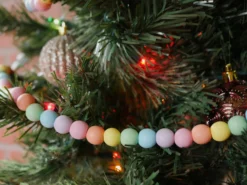 9-Foot Vintage Rustic Pastel Rainbow Easter Spring Matte Wood Bead Garland Christmas Tree Decoration
