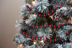 18-Foot Extra Long Rustic Bright Red And Green Wood Bead Garland Christmas Tree Decoration