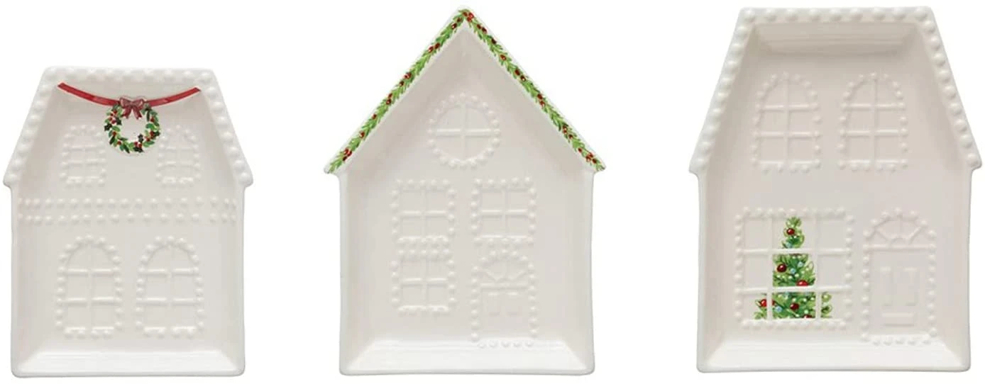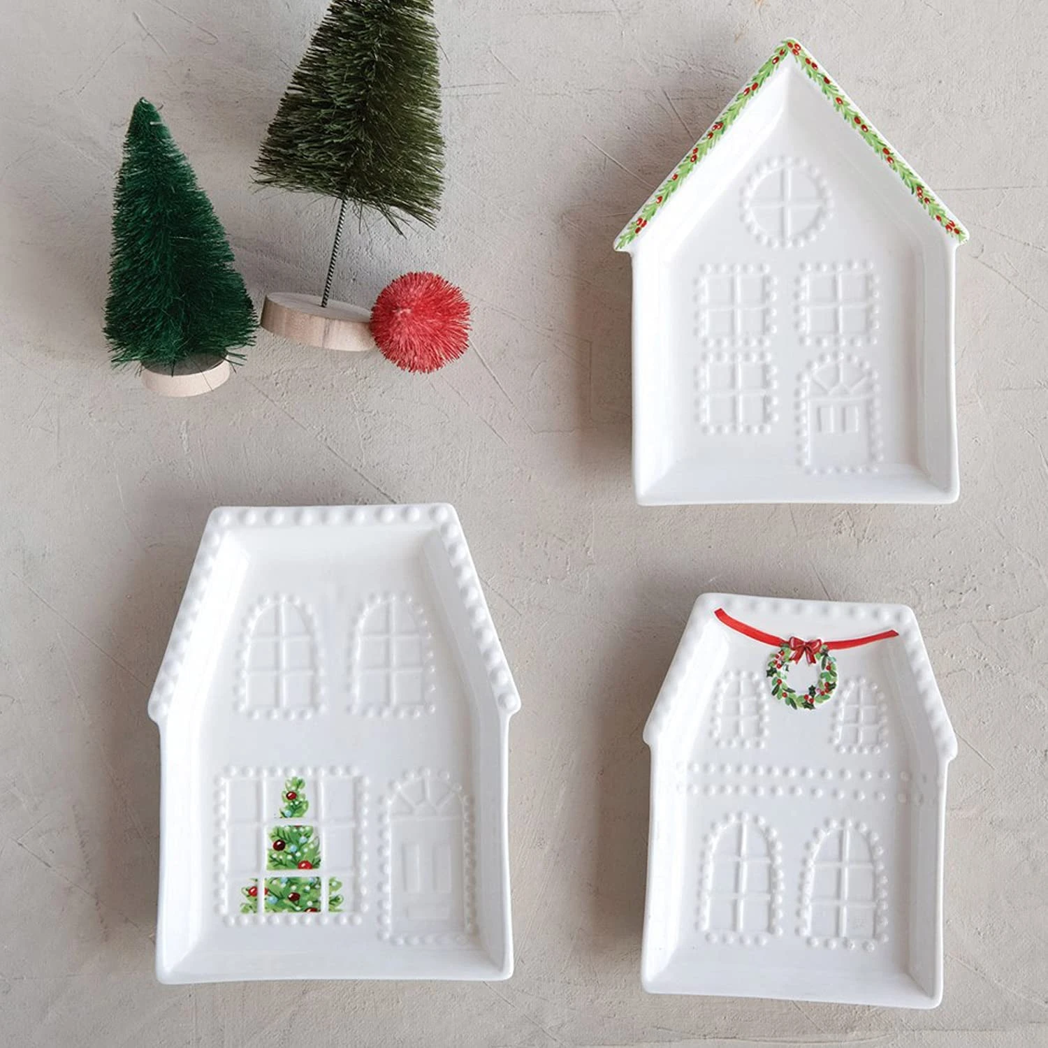 - SERVE DESSERT, APPETIZERS, AND MORE on these charming, elegant dishes. Stack these festive house shaped plates with cookies or snacks at your holiday party