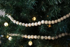 - Beautiful real wooden beads in an antique gold color add a classic holiday look to your home decor.